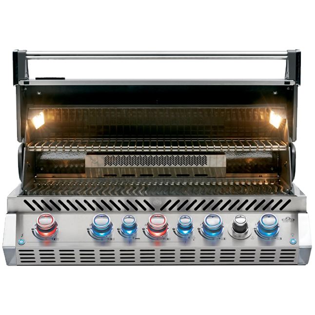 Mangler du den helt rette indbygningsgrill til dit udekøkken? Napoleon har bragt indbygningsgrillen til Danmark, og det er ikke hvilken som helst indbygningsgrill; Prestige PRO™-serien er simpelthen rendyrket luksus. Denne topmodel har et smukt rent design, og er proppet til randen med ekstravagante detaljer og funktioner. Alt det rustfrie stål på grillen er lavet i 304 rustfrit stål og alene LED lyset i grillen taler helt for sig selv: Grillen projekterer et lysende logo ned på underlaget foran grillen, og NIGHT LIGHT™ lyset i knapperne kan du selv designe farven på - lyset kan endda indstilles til at tænde, når du nærmer dig grillen.