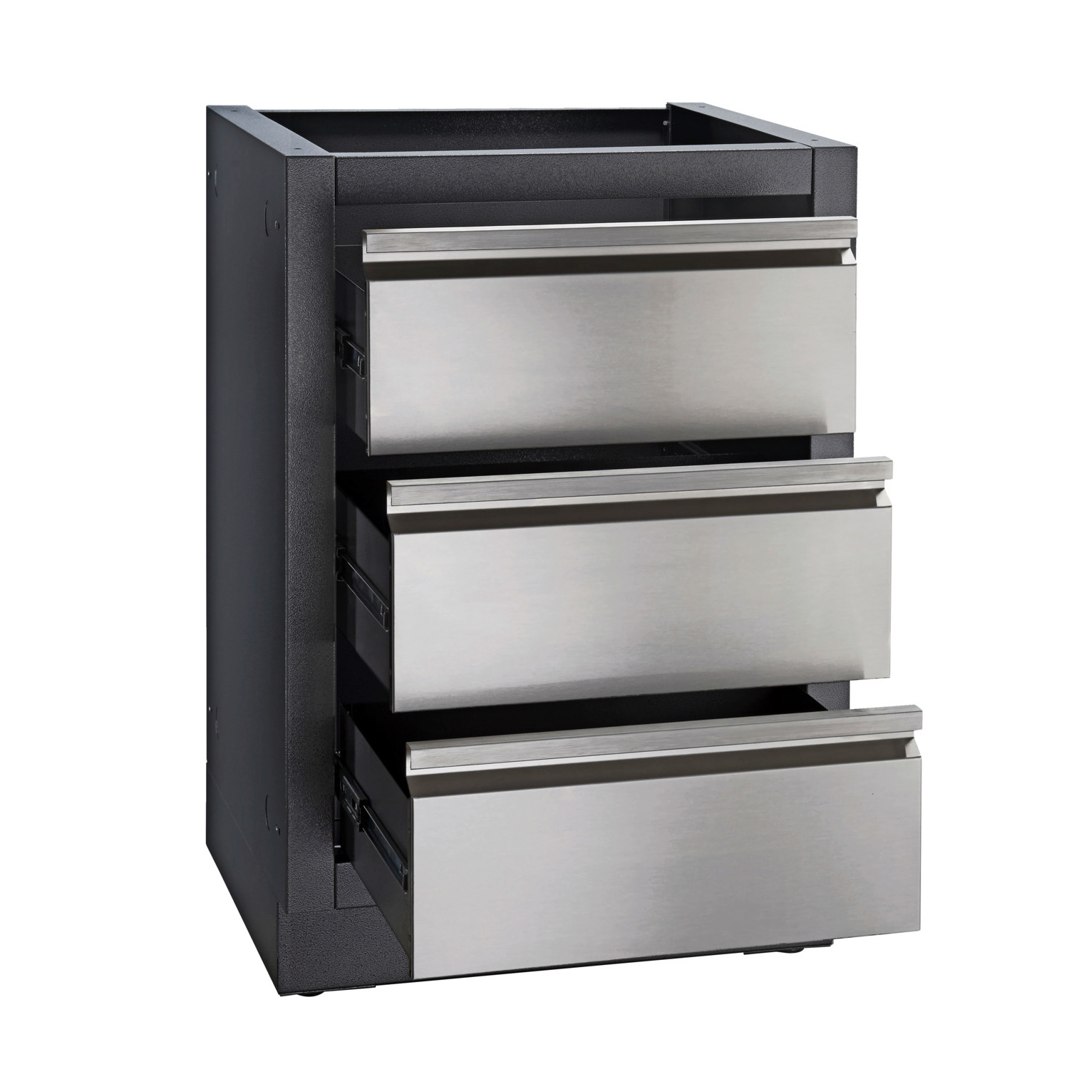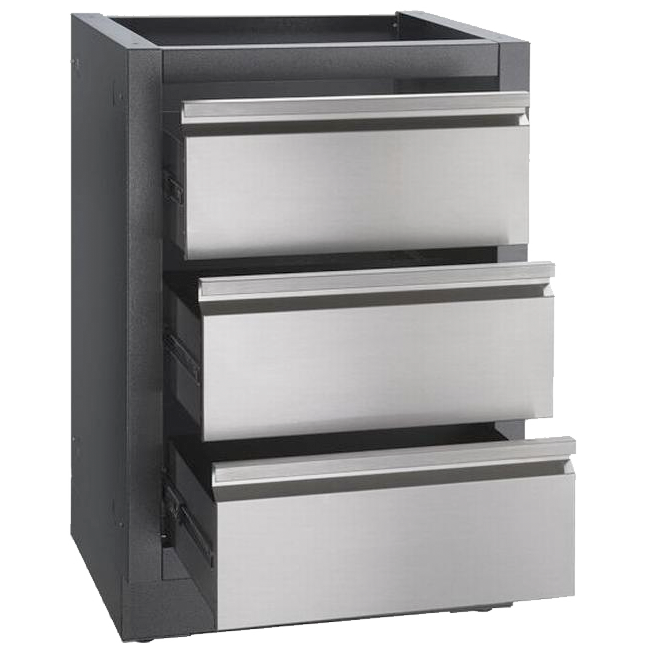 Dette OASIS™-skuffemodul har tre store skuffer og er perfekt til opbevaring af grillredskaber. Modulet har justerbare fødder, så det kan stå lige selv på ujævnt underlag. Ovenpå modulet er der plads til en bordplade, som skal købes særskilt.