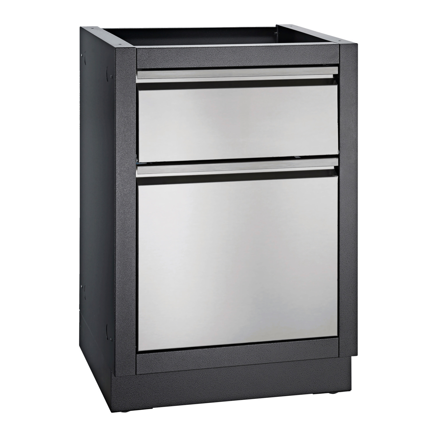 Dette OASIS™-skabs- og skuffemodul har indbygget køkkenrulleholder og skraldespandstativ så du har køkkenrulle og skraldespand lige ved hånden når hygiejnen skal være helt i top i dit udekøkken. Modulet har justerbare fødder, så det kan stå lige selv på ujævnt underlag. Ovenpå modulet er der plads til en bordplade, som skal købes særskilt.