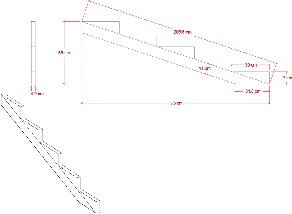 Brædder til trin (28×120 mm) skal tilkøbes hos trælasten eller byggemarkedet - medfølger ikke.
