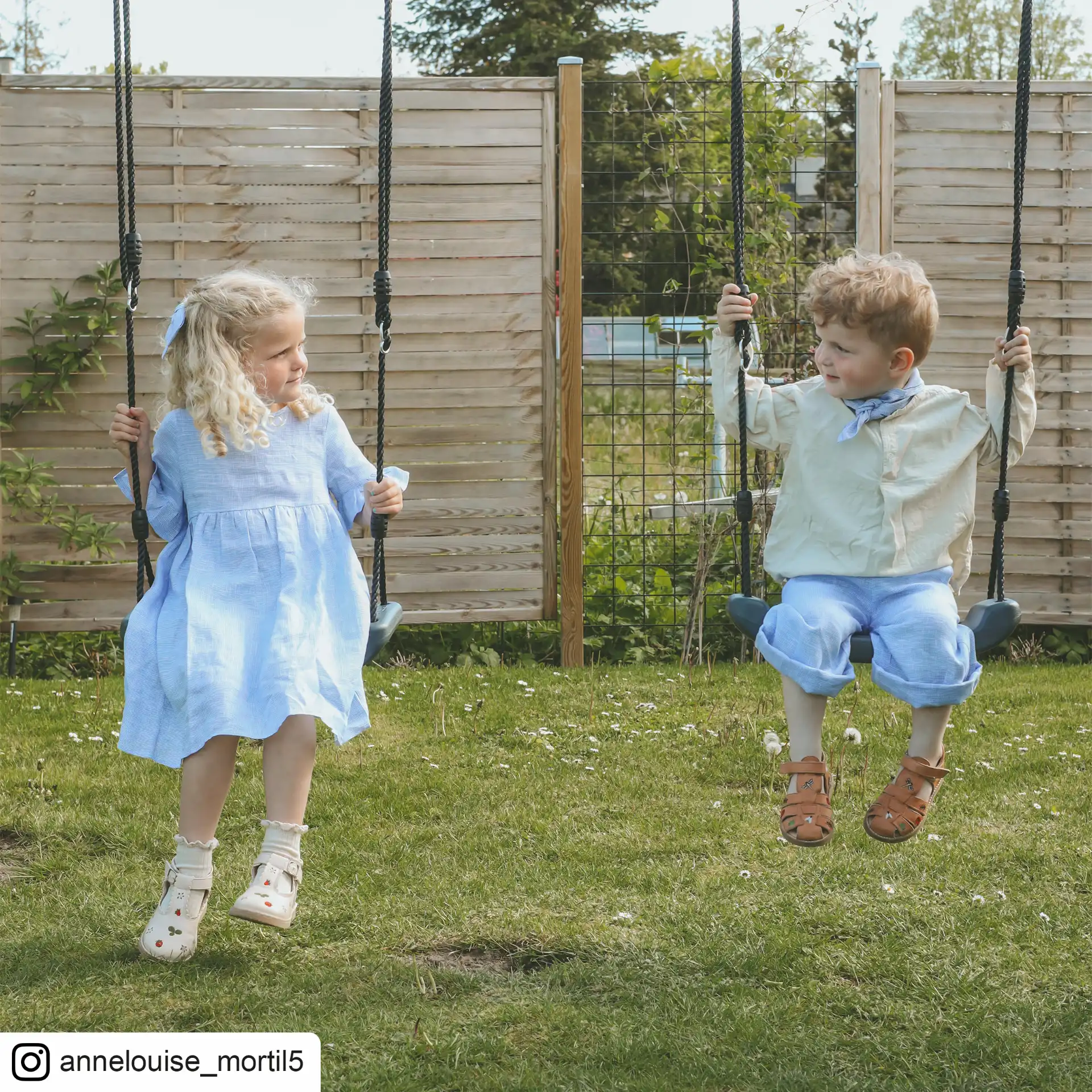 Med et fint gyngesæde i gråsort kan du opsætte gyngestativ i haven helt uden at det skæmmer omgivelserne. Det neutrale gyngesæde falder flot ind i havens miljø.