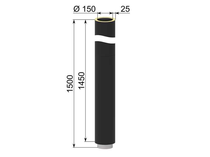 Forlænger modul halvisoleret, L:1000mm pulverlakeret