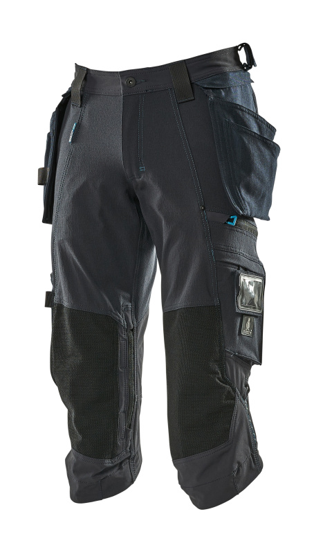Har en vandafvisende finish. Ultimativt strækstof med lav vægt og høj slidstyrke. Stoffet mærkes nærmest ikke mod huden, da lommerne er integrerede i designet. Tonålssømme på ben og i skridt. Lav talje. Bukseben er ergonomisk formede. Bæltestropper. Gylp med lynlås. Aftagelige hængelommer af slidstærk CORDURA® - forreste del af højre hængelomme har stikmodstandsdygtig Kevlar®-forstærkning i bunden. Forlommer. Baglommer. Værktøjsstrop i begge sider af linning. Lårlomme med telefonlomme med magnetlukning og integreret ID-kortholder. ID-kortholder er aftagelig. Tommestoklomme i CORDURA® med ekstra lommer. Slidstærke og stikmodstandsdygtige knæpudelommer i CORDURA®/Kevlar®/Dyneema® er elastiske og med ventilation. Nem, individuel regulering af knælommens højde. Reflekseffekter. Vi anbefaler 00718-100, 50451-916 og 20118-915 knæpuder til denne model. Samcertificeret med knæpudetype LONG i henhold til EN 14404.