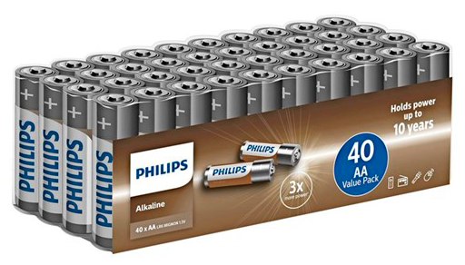 PHILIPS BATTERI ALKALINE AA pk med 40 stk