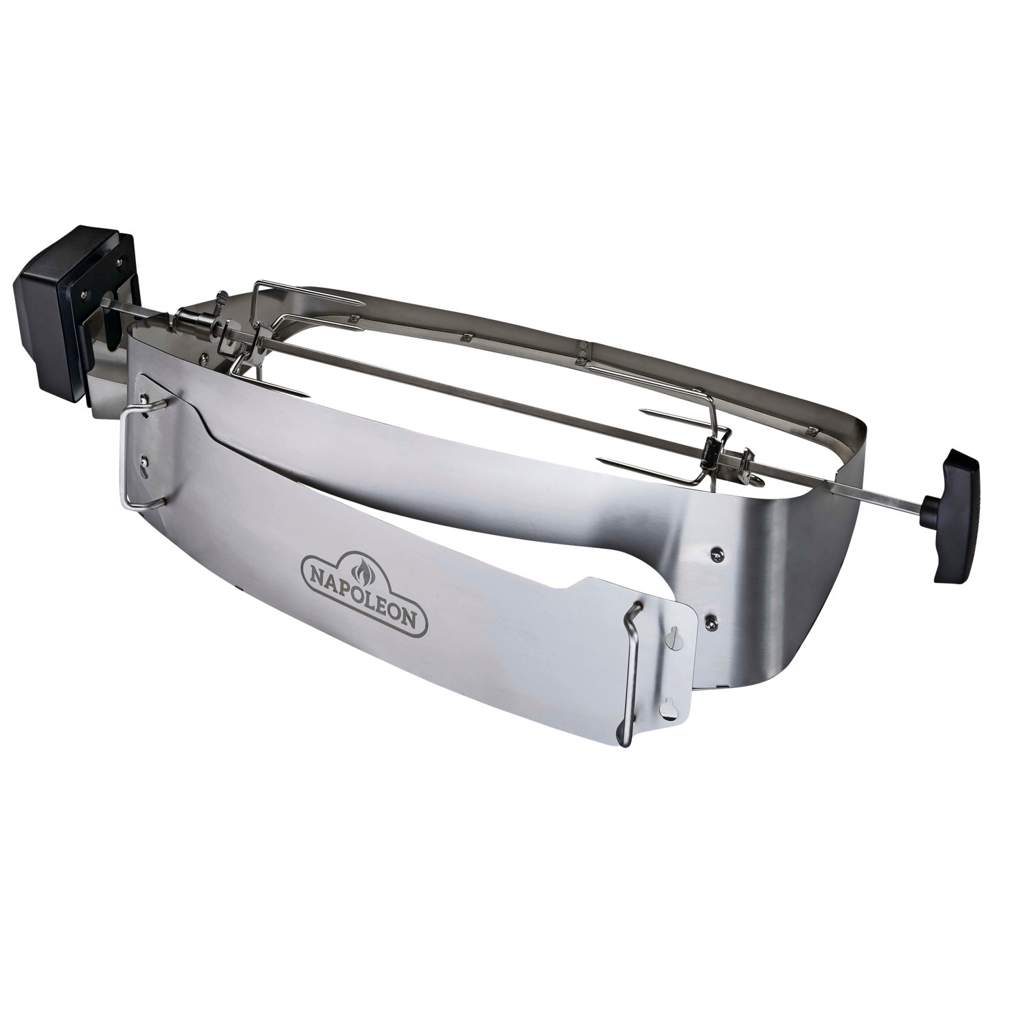 Med denne fikse rotisseriudvidelse til Napoleon TravelQ bliver din mobile grill til en sand multifunkionsgrill. Nu kan du nemlig tilberede grillkylling, hamburgerryg og andesteg til perfektion, uanset om det er på campingpladsen eller på stranden – og med den smarte åbning, kan du endda omdanne din TravelQ til en pizzaovn, så du kan lave de sprødeste og lækreste pizzaer på din grill.
