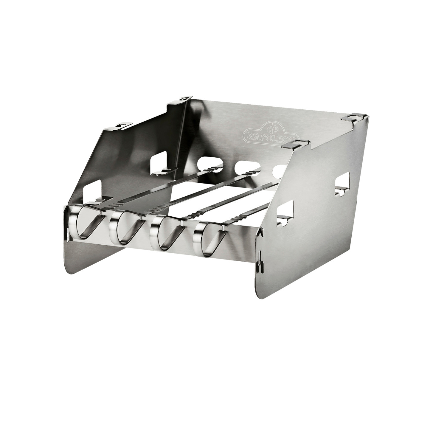 Nu kan vinden blæse os et stykke, for med denne vindskærm til Sizzle Zone, kan du grille bøffer på fuld knald selv på en vindblæst terrasse. Vindskærmen er lavet i stål og sørger for, at den infrarøde flamme i Sizzle Zonen ikke går ud i blæsende vejr. I vindskærmen er der desuden indbygget fire holdere til grillspyd, så du har mulighed for at tilberede grillspyd direkte på din Sizzle Zone.